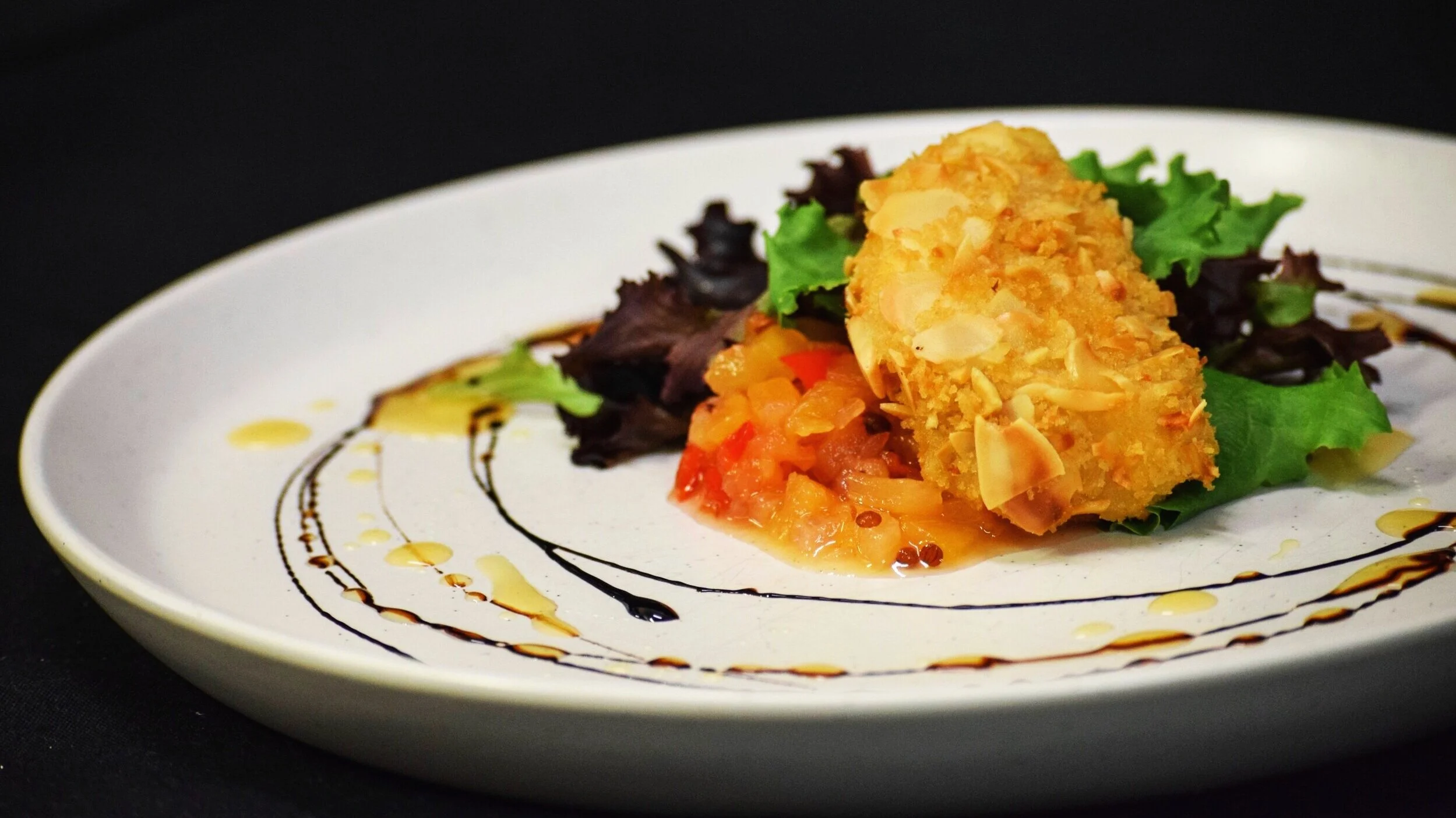 Croustillant de chèvre des neiges enrobé d'amandes et panko avec un chutney à l’ananas gold et coriandre